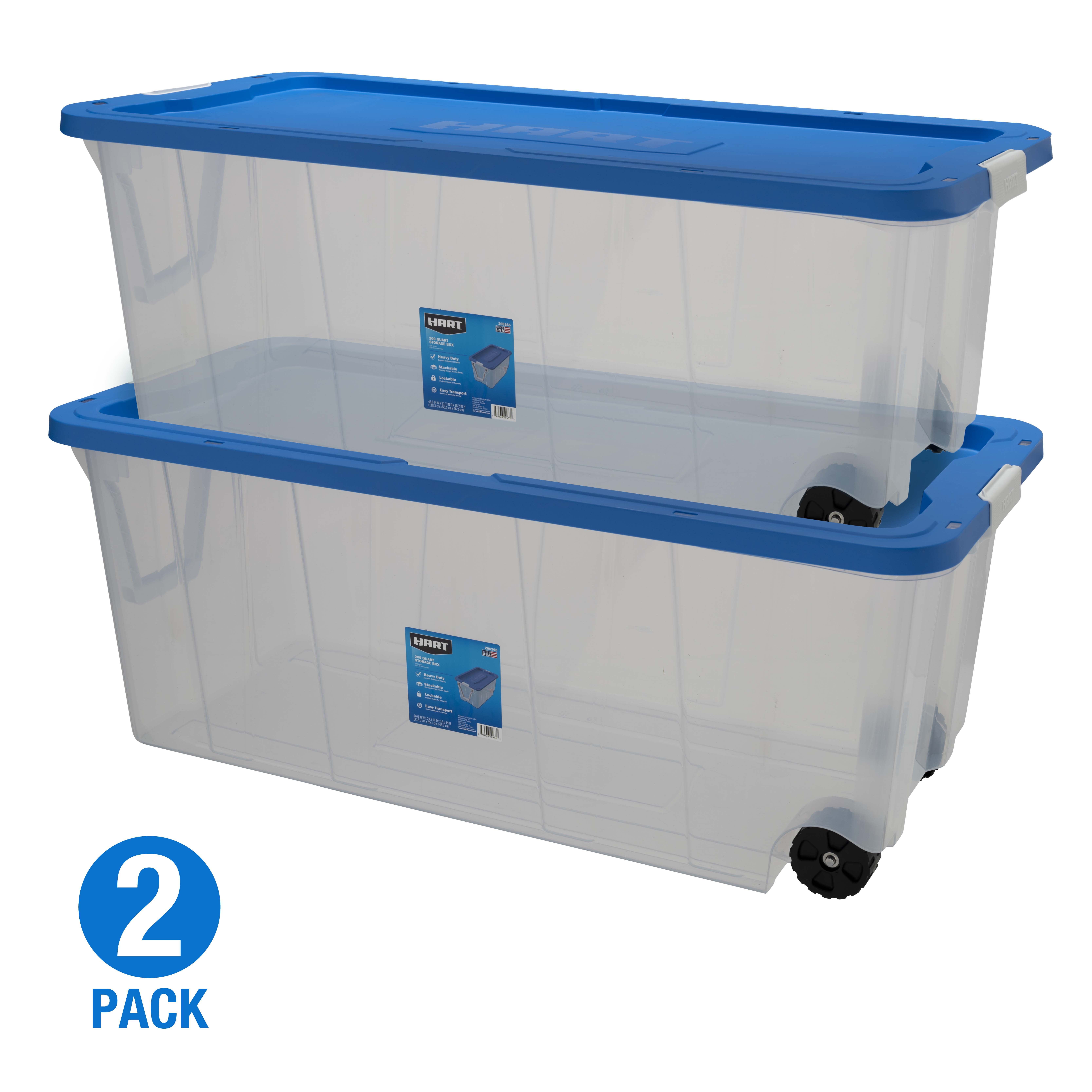 Hart 200 Quart Clear Latching Rolling Plastic Storage Bin Clear Tote Blue Lid Set Of 2 Walmart Com